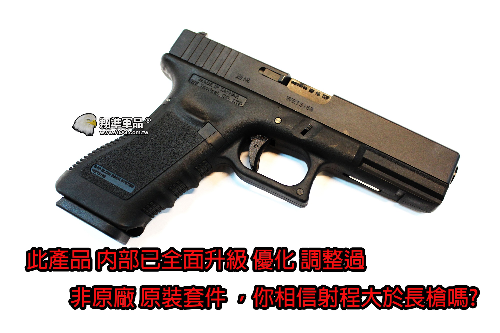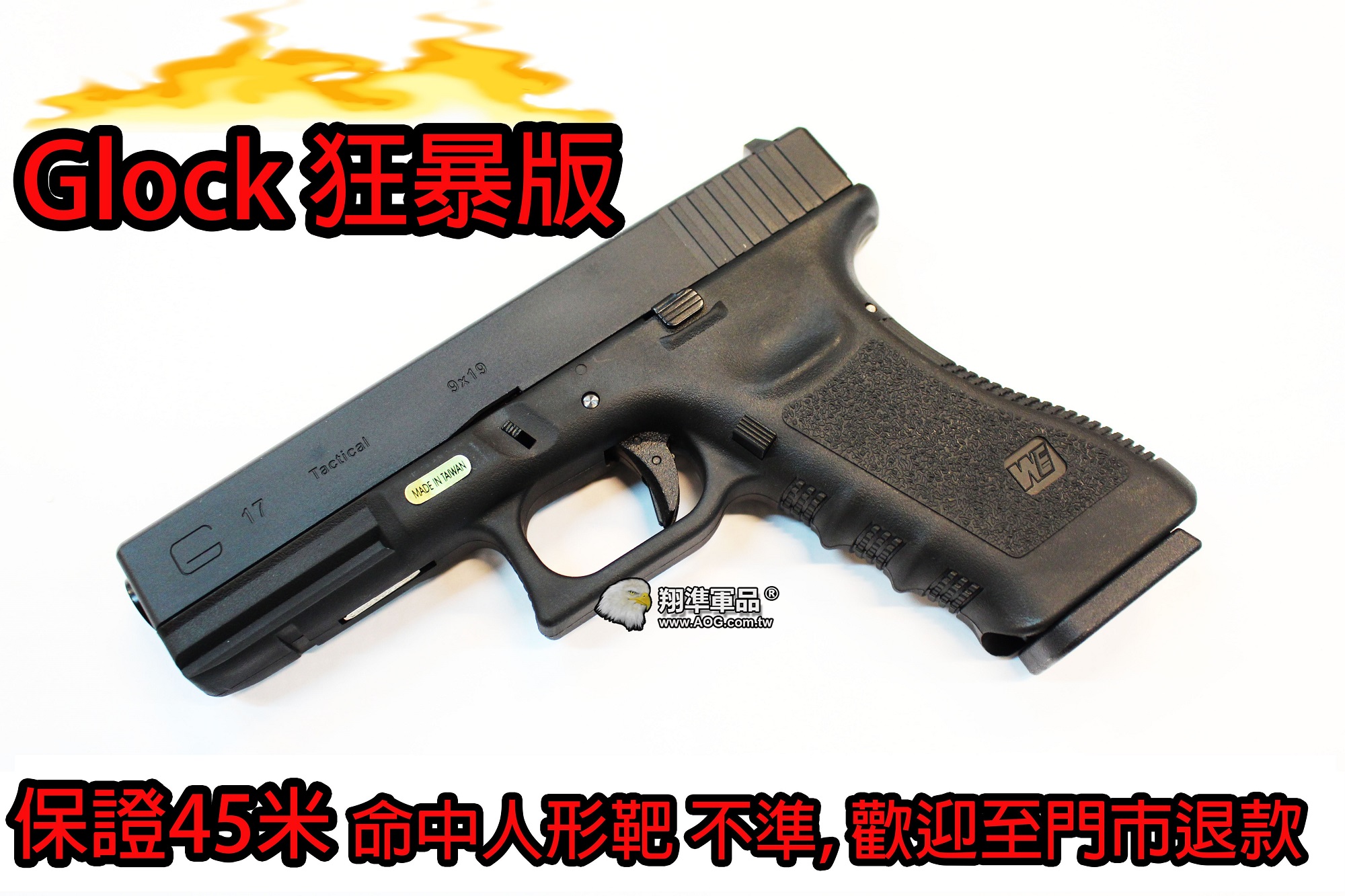 【翔準軍品AOG】狂暴版 WE G17 GLOCK 瓦斯手槍 60米射程 優化版本 D-02-09