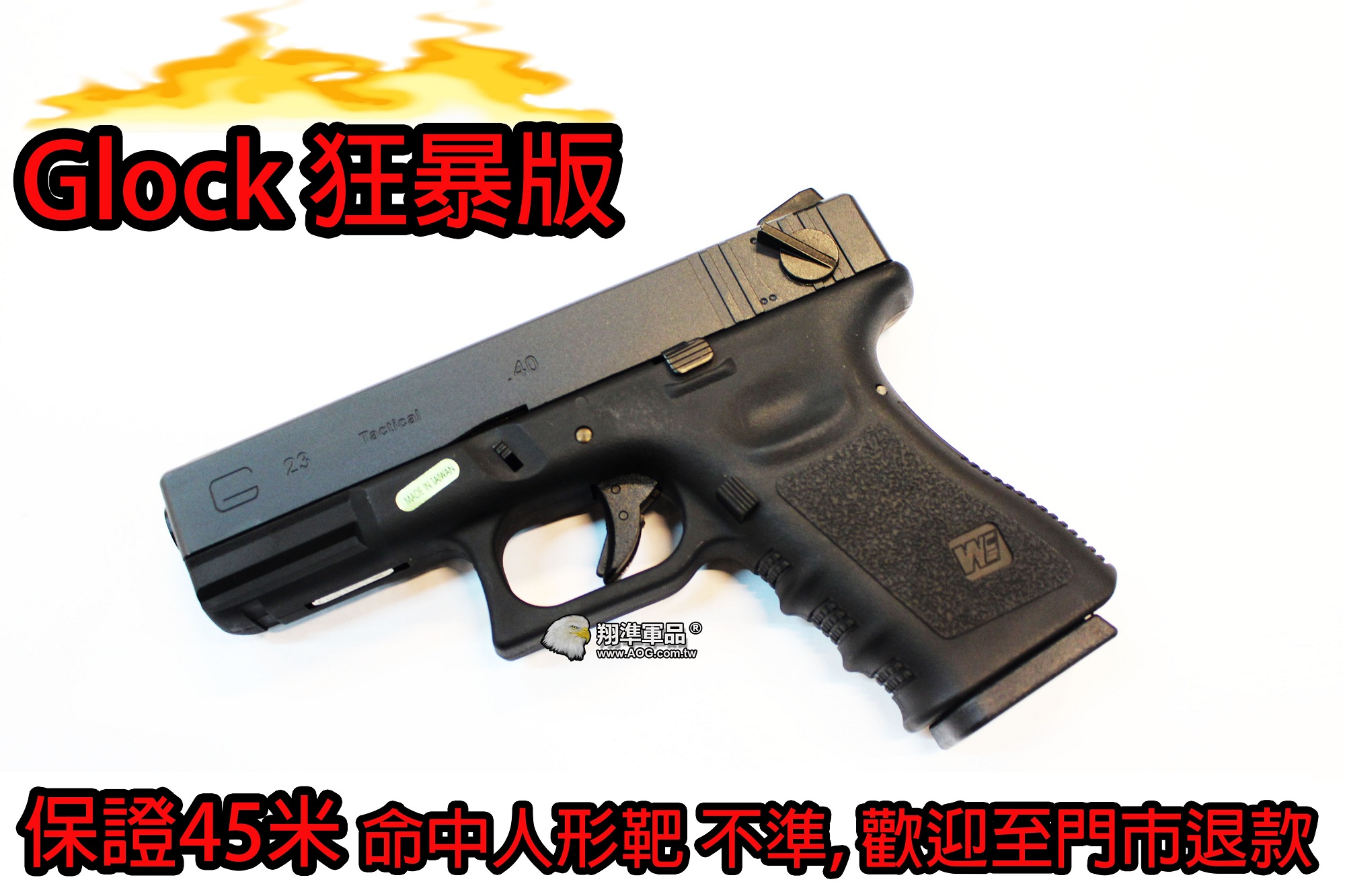 【翔準軍品AOG】狂暴版 WE G23 GLOCK (黑)瓦斯手槍 60米射程 優化版本 D-02-07