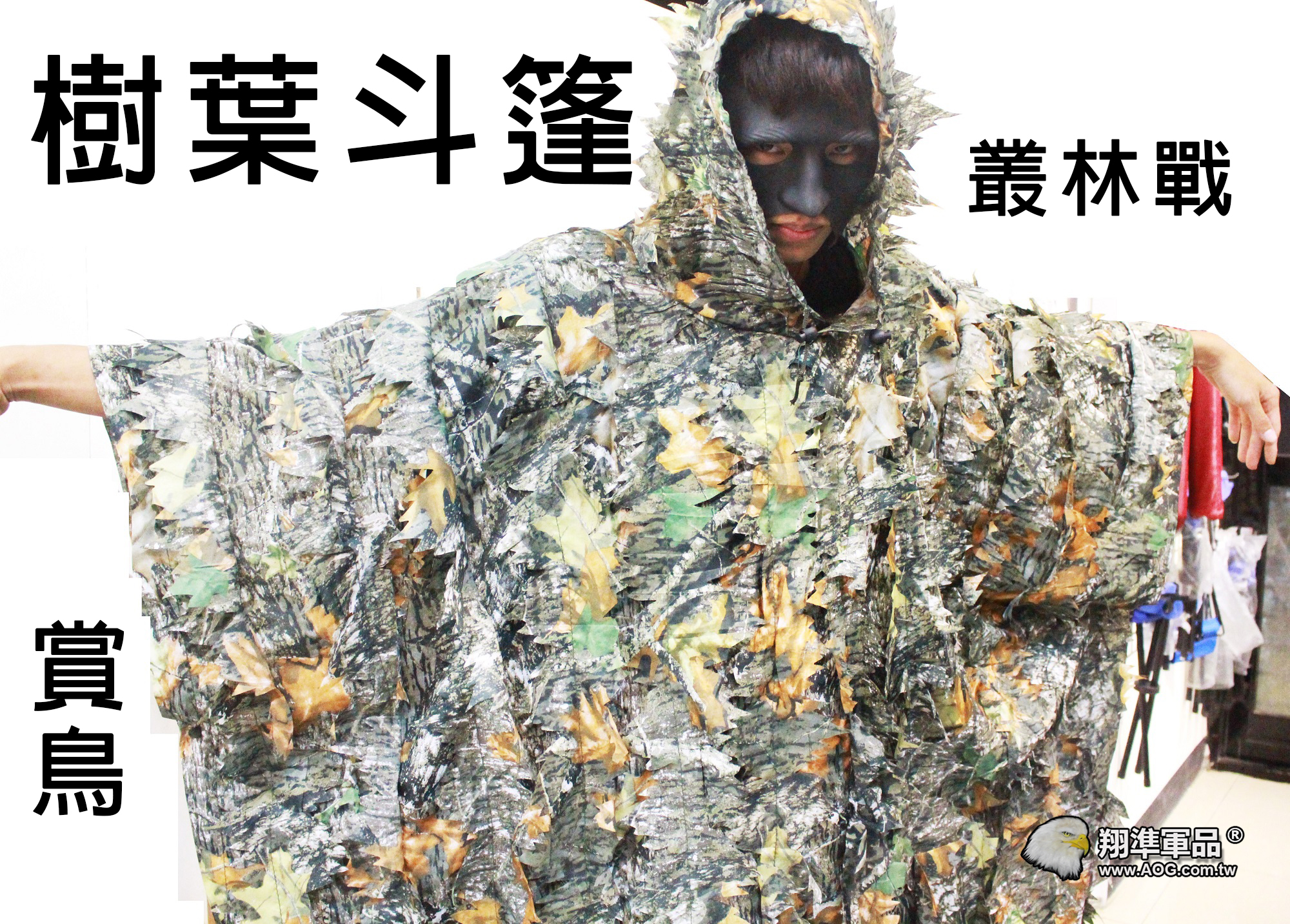 【翔準軍品AOG】樹葉斗篷偽裝服 全黑 衣服+褲子 偽裝網 /吉利服/賞鳥/cs生存遊戲/部隊用/拍戲/道具/狙擊手/迷彩服 G4008G